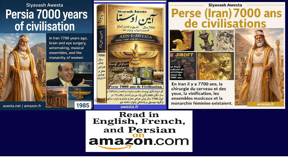 | In 1982, when Siavash Avesta wrote about Iran’s more than seven thousand years of civilization and published the Seven Thousand Years Almanac every year from Paris, many academics, historians, and university professors did not believe it and did not accept that Iran had a civilization of more than seven thousand years. Even today, they still speak of 2,500 years of civilization. Following the publication of this book in different languages around the world, today the entire world speaks of Iran’s seven thousand years of civilization—except for the ruling ayatollahs and their mercenaries, who have infiltrated everywhere. |